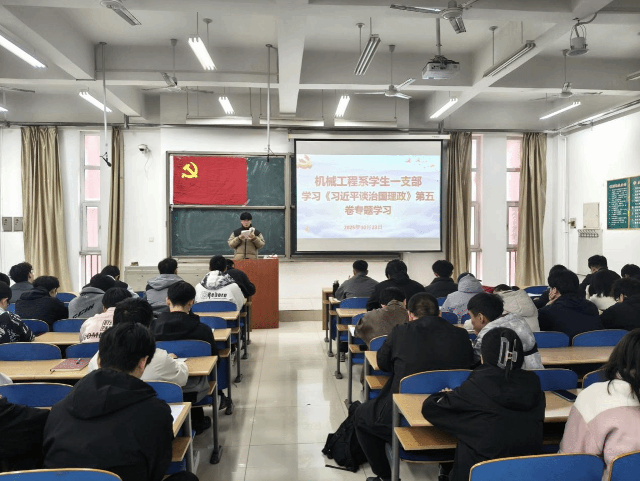 为切实加强党员教育培训,全面落实《全国党员教育培训工作规划(2024-2028年)》要求,根据省委组织部、市委组织部和学院党委组织部工作部署,2025年10月23日下午机械工程系学生一支部组织我系全体党员、预备党员和入党积极分子开展了“2025年度党员专题培训”,本次培训由支部书记贺欢呼主持。