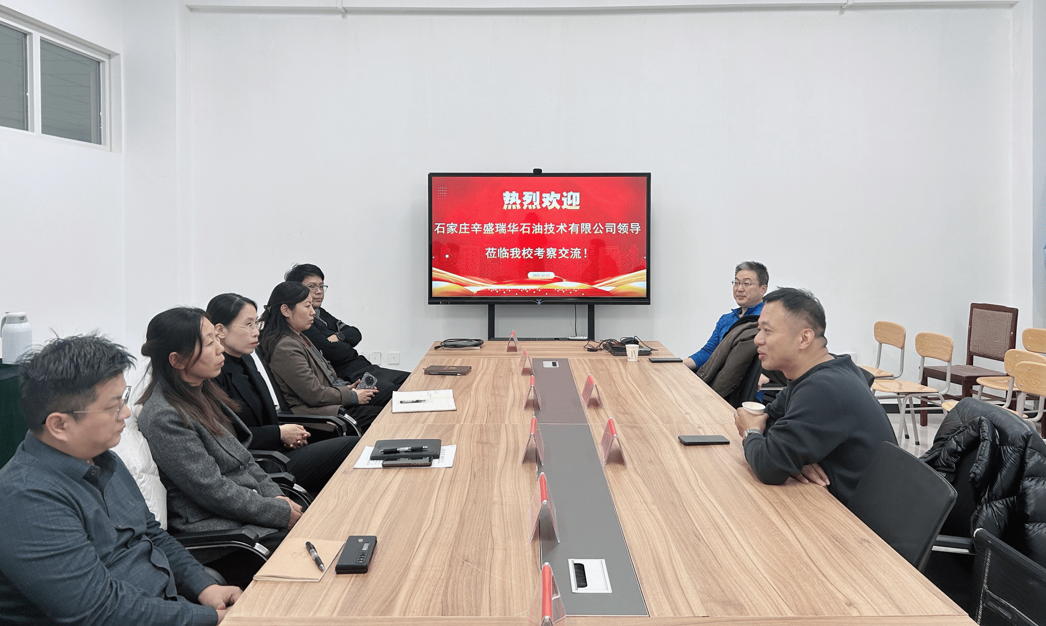 此外,双方就学生实习实践基地建设、毕业生就业、在职人员培训以及校企联合课程开发等环节进行了广泛而务实的沟通。石家庄辛盛瑞华石油技术公司表达了对我校人才培养质量的认可,并表示愿为优秀学子提供更多实习与就业机会,以使学生更好地适应行业发展的实际需求。系领导对此回应,将积极推动教学实践环节与企业需求的对接,助力学生提升工程实践能力和职业竞争力,为企业输送更多高素质应用型人才。