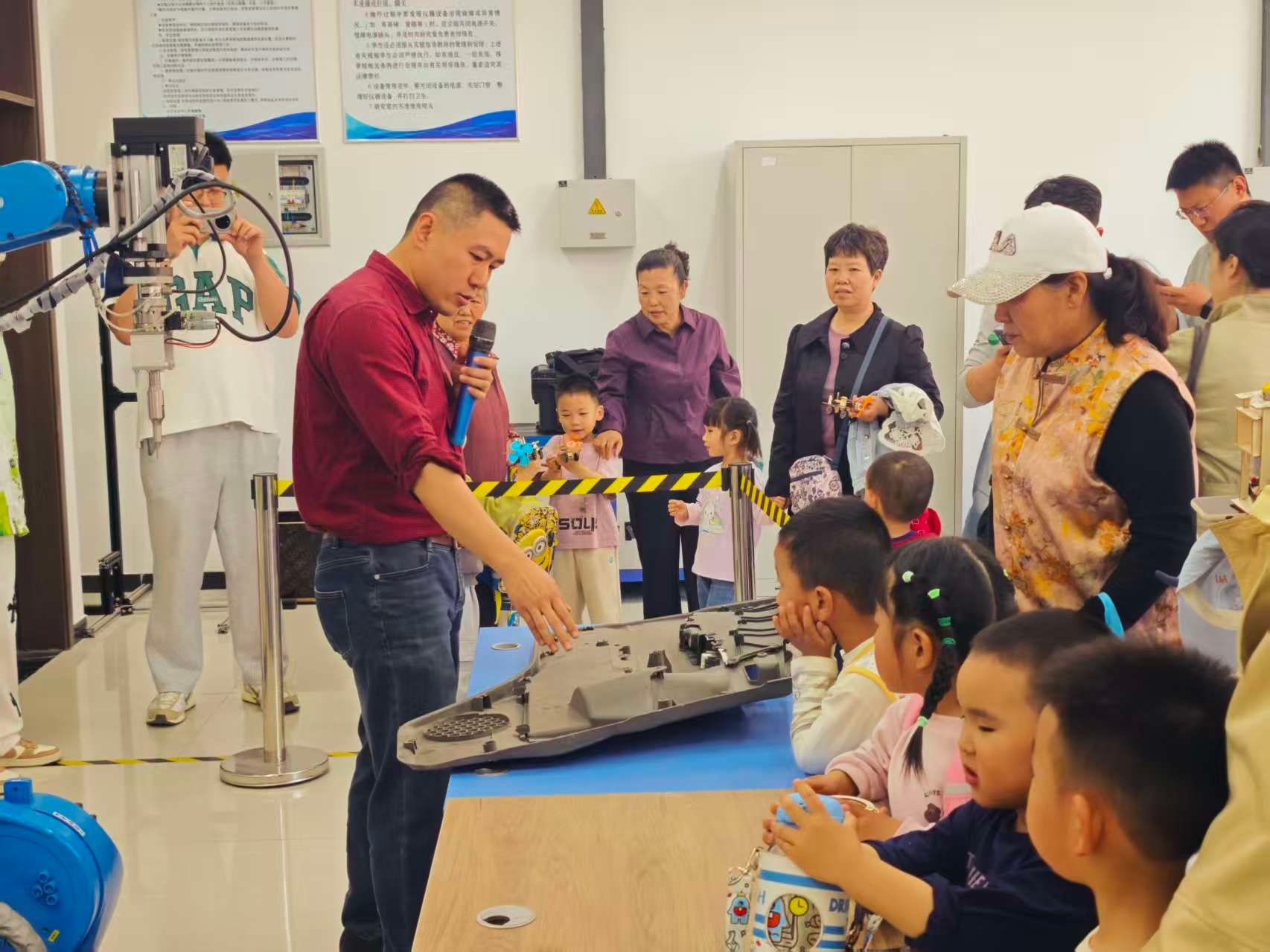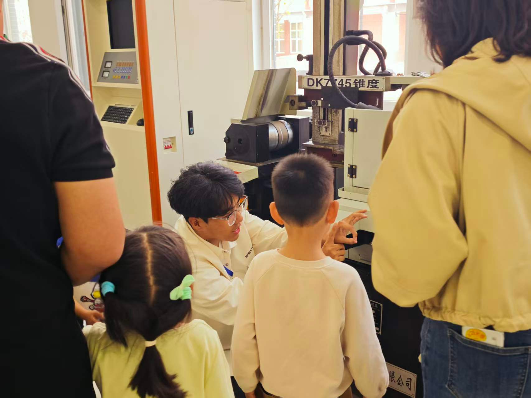 参观团先后参观了机械工程科技社团作品、河北省工业机械手控制与可靠性技术创新中心、智能加工中心等场所,机械工程系师生志愿者们用通俗易懂、生动有趣的语言,为参观团讲解设备工作原理,耐心解答孩子们的各种疑问。孩子们认真观察、积极互动,在直观感受中触摸科技、认识世界,心中悄然种下探索求知的种子。陪同的家长们也对校园的育人环境、专业办学特色给予了高度评价,纷纷表示此次活动让孩子们开阔了眼界、增长了见识,是一次十分有意义的成长体验。