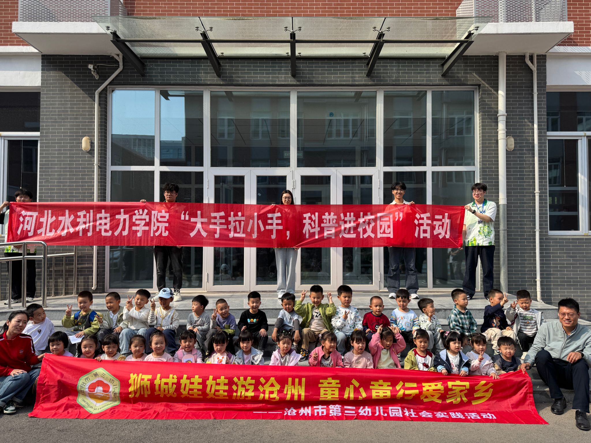 为进一步发挥学校服务社会的职能,传播科学知识,2026年4月23日下午,河北水利电力学院机械工程系与沧州市第三幼儿园联合开展“大手拉小手 科普进校园”活动。由沧州市第三幼儿园师生及家长组成的参观团走进河北水利电力学院机械工程系实验室,进行了沉浸式参观体验。本次活动共有70余名师生、家长共同参与,在轻松愉悦的氛围中,孩子们近距离感受科学的魅力,收获了满满的知识与快乐。