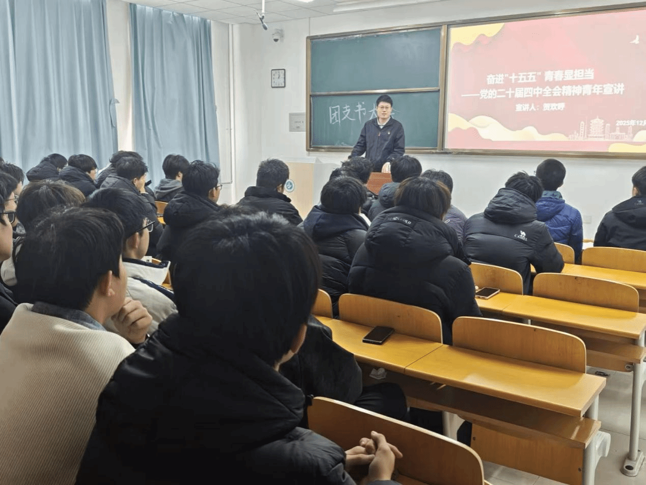 为深入学习宣传贯彻党的二十届四中全会精神,2025年12月2日,机械工程系在2C203教室召开学习贯彻党的二十届四中全会精神专题会议,会议由系团委书记贺欢呼老师主持,78位团支书及委员参会。